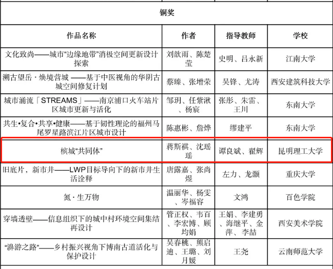 城市设计组铜奖获奖名单