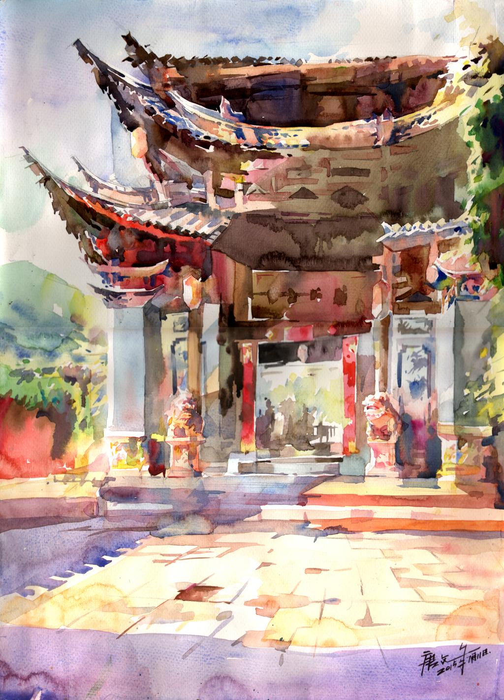 唐文教授的美术作品《楚雄黑井百年盐商大院》入选本次展览。