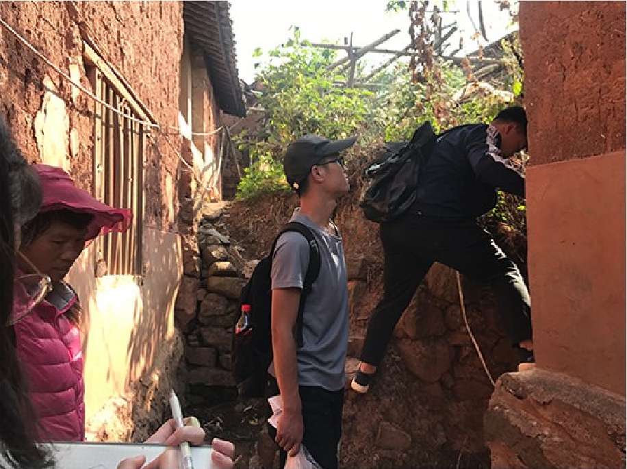 7月12日,实践团队抵达大摆衣村落,了解整个村落现状并研究当地传统民居及其历史文化。并且依次走访了参与活动的农户家,结合调查问卷询问具体农户对住宅的需求。同时,团队也与乡政府积极沟通,争取更多的政府扶持。