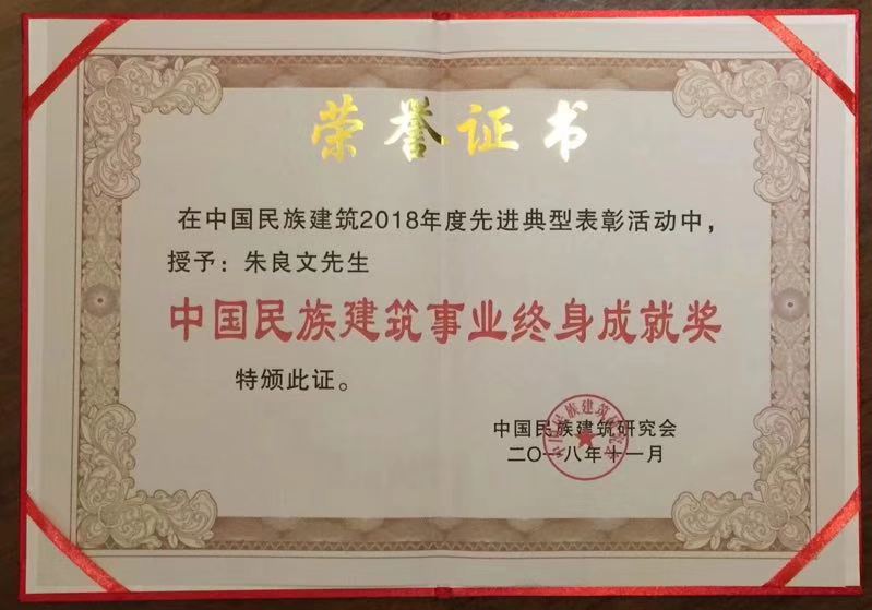 朱良文教授以其从业五十余载为我国民族建筑及文物保护事业做出的卓越贡献,荣膺2018年度“中国民族建筑事业终身成就奖”。据悉,“中国民族建筑事业终身成就奖”由中国民族建筑研究会于2008年发起,是我国建筑学界最权威的评选之一,已有罗哲文、吴良镛等二十多位享誉中外的知名学者和业界泰斗获此奖项。