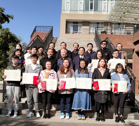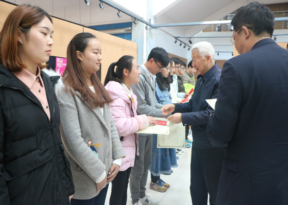 翟辉院长代表学院宣读了“关于表彰2017年度第四届朱良文奖助学金获奖人员的决定”,敖丽婵、赵万丽、杨艳芬、田菲菲、李旱雨、李艳萍、姚丽蓉7名同学获朱良文学习勤奋奖学金,房玺智、李涧盈、陈仁全3名同学获朱良文助学金。彭金辉院士和朱良文教授共同上台为获表彰同学颁发了荣誉证书和奖金。