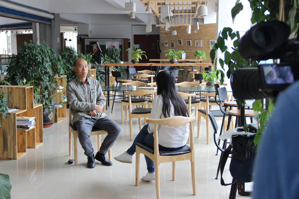 9月22日上午,云南电视台记者在建筑楼中庭“建筑客厅”对蘑菇视频