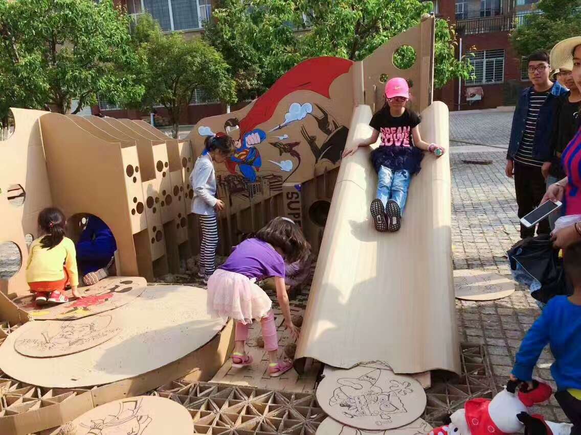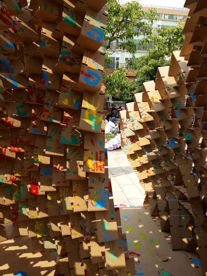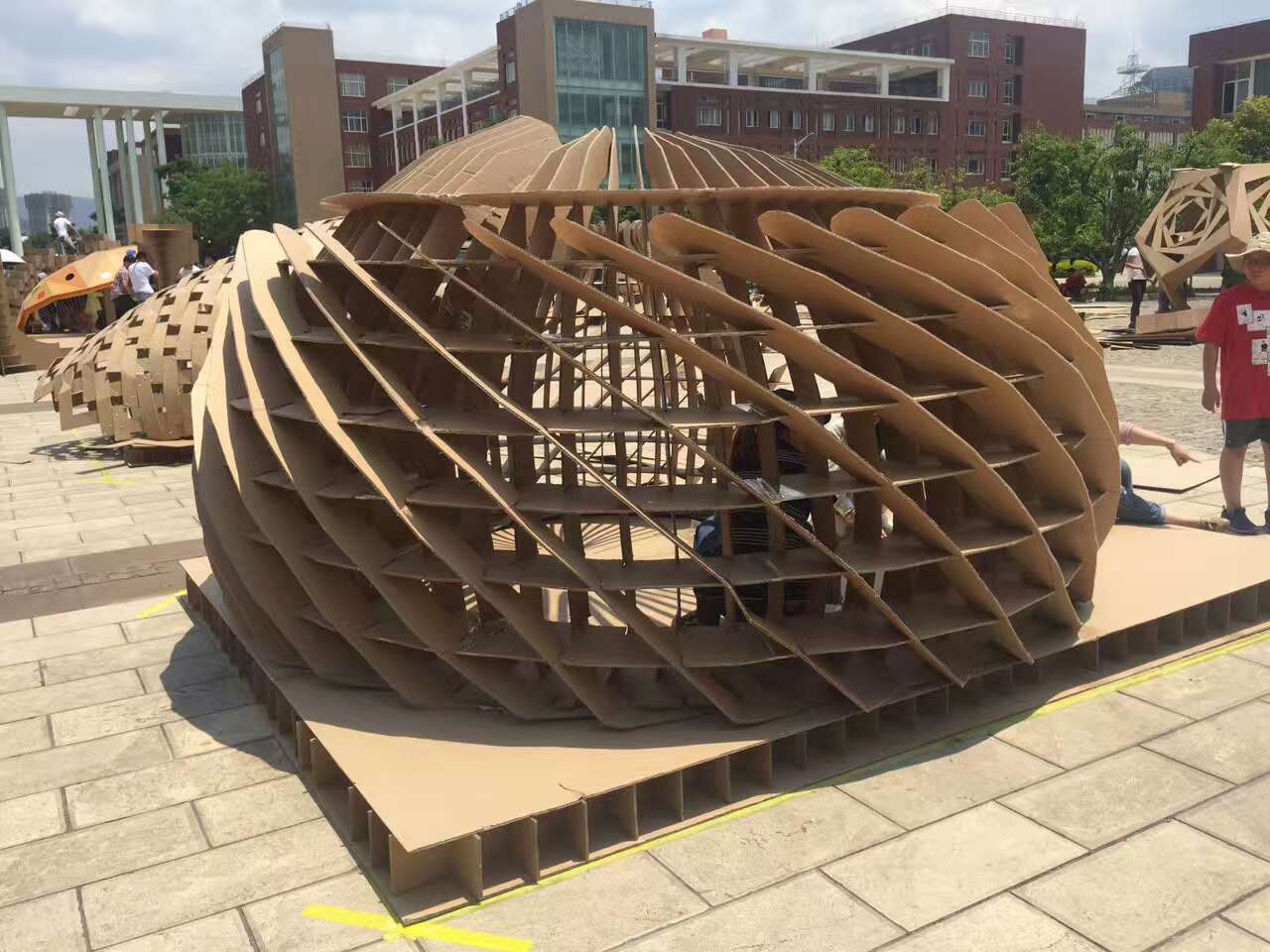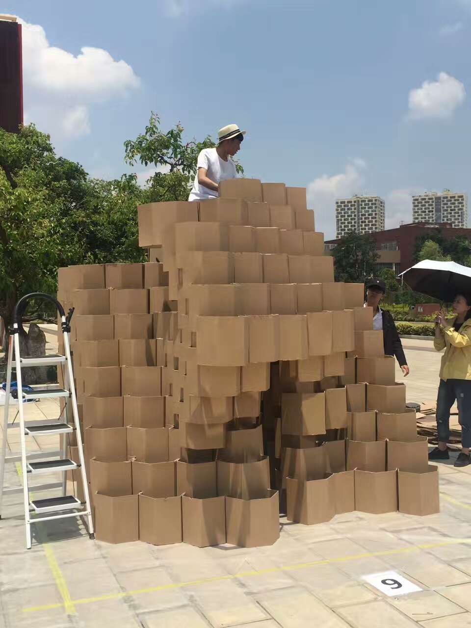 13日下午各队的参赛方案陆续出炉,也吸引了很多前来玩耍的孩子。下午4点经评委团对各纸板建筑在结构、空间和形态等方面的综合考量,评出了本届建造节的各个奖项。获得一等奖的是蘑菇视频
