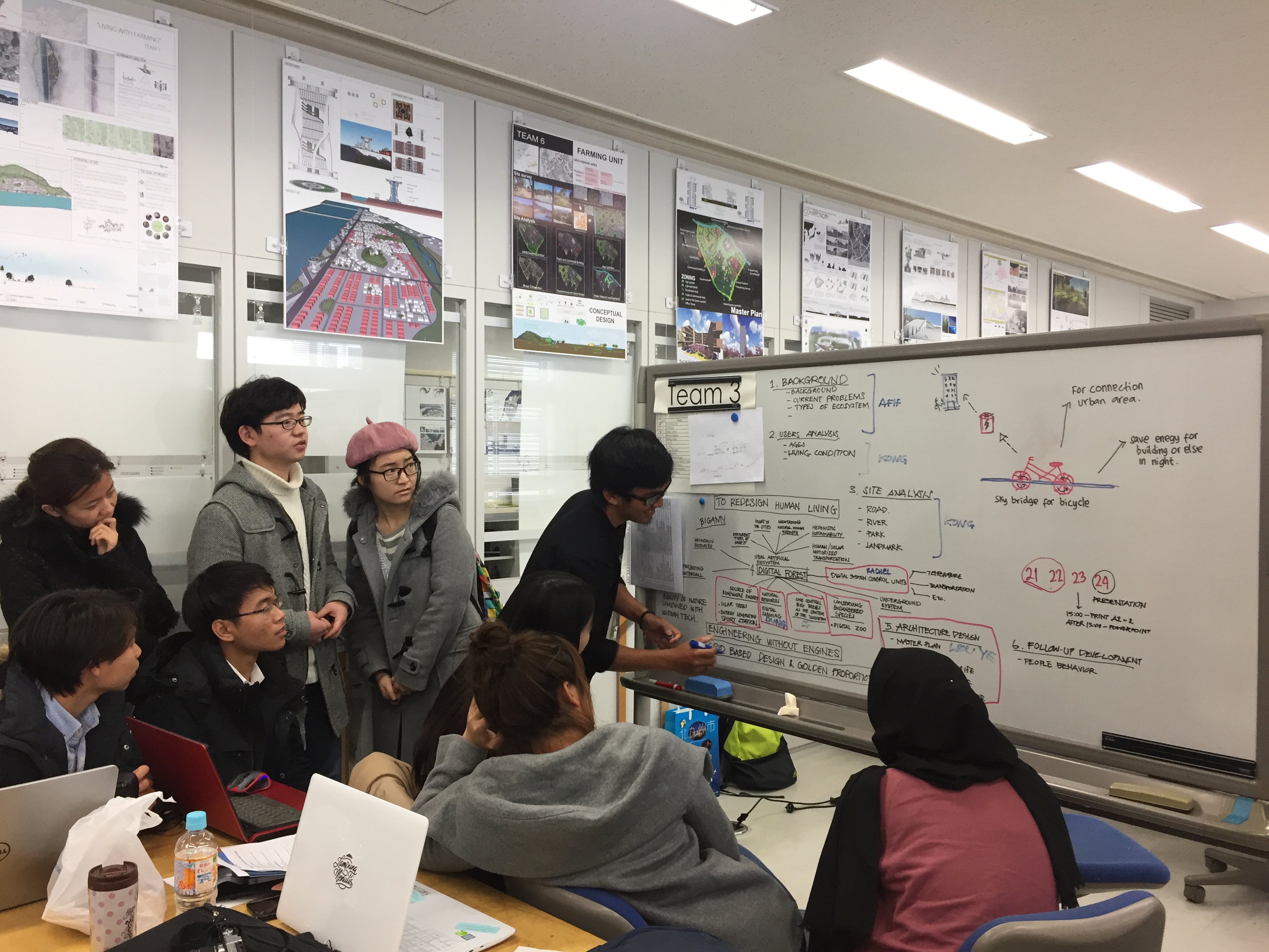 2017年2月16日上午,在北九州市立大学国际环境部举行了workshop欢迎会,首先是workshop负责人bart老师讲话,详细介绍了本次workshop的主题和场地,并对来自不同国家、各个高校的同学做出分组,并对工作营的日程和相关事宜作出安排。本次workshop主题是“digitalkokura”(数字小仓)。要求以小仓市区的数字城市的概念提出一个规划设计提案,进一步探索和解决目前北九州市小仓地区土地资源稀缺、公共资源合理化配置及老龄化严重等现实问题。