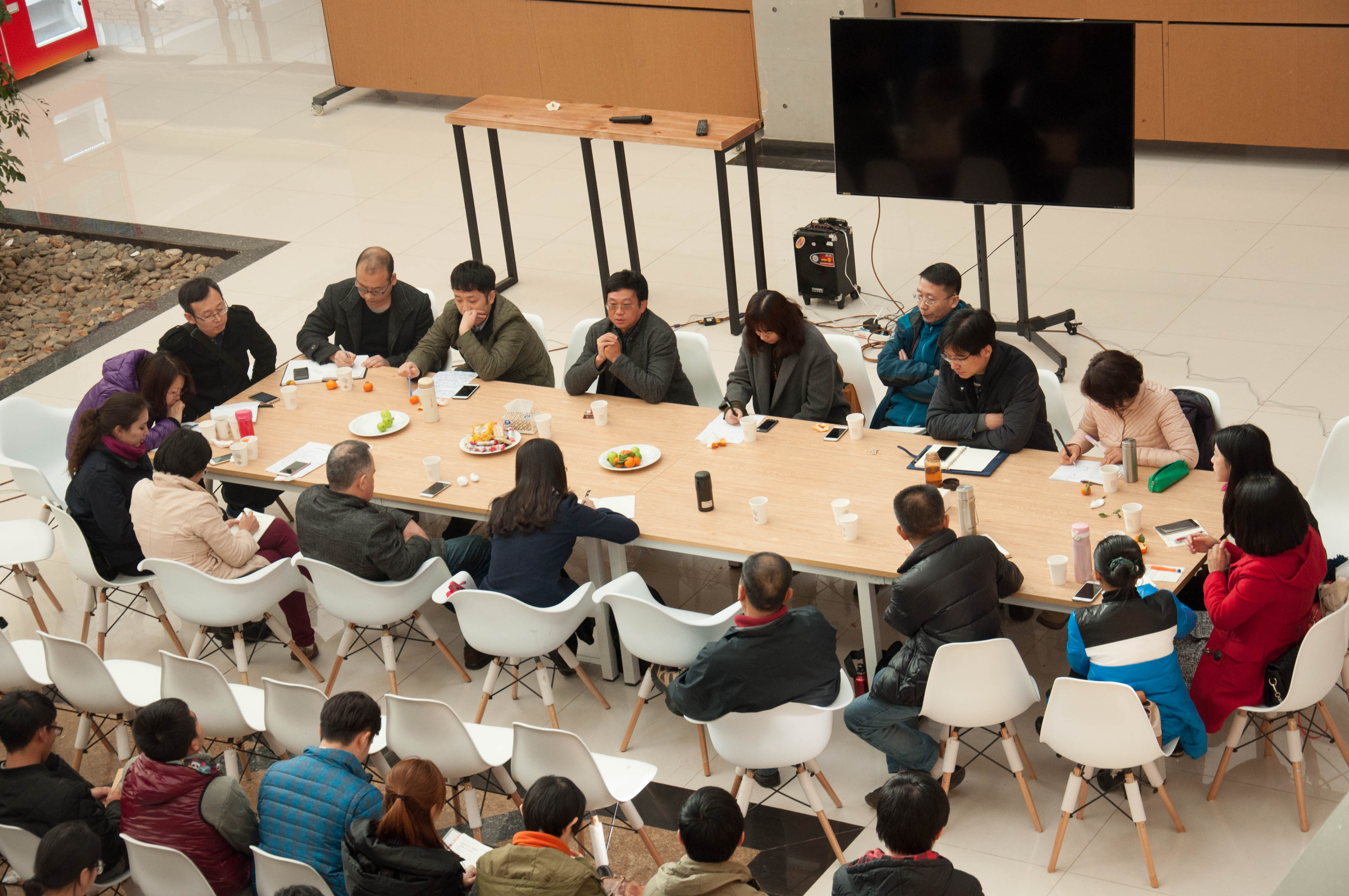下午各校在在建筑楼中庭举行了毕业设计师生沙龙交流会。就毕业设计教学难点、学生对毕业设计教学的期望两大议题展开了广泛研讨。会后,各校确定创新本次联合毕业设计4月份的中期教学汇报,通过蘑菇视频