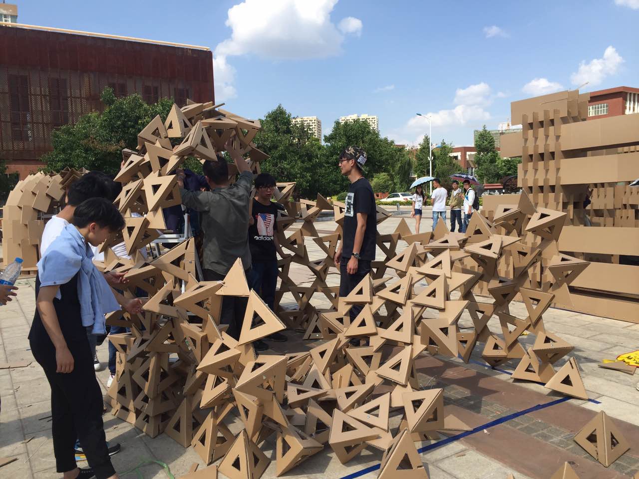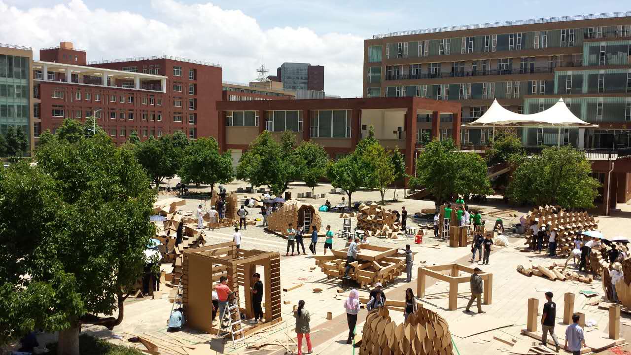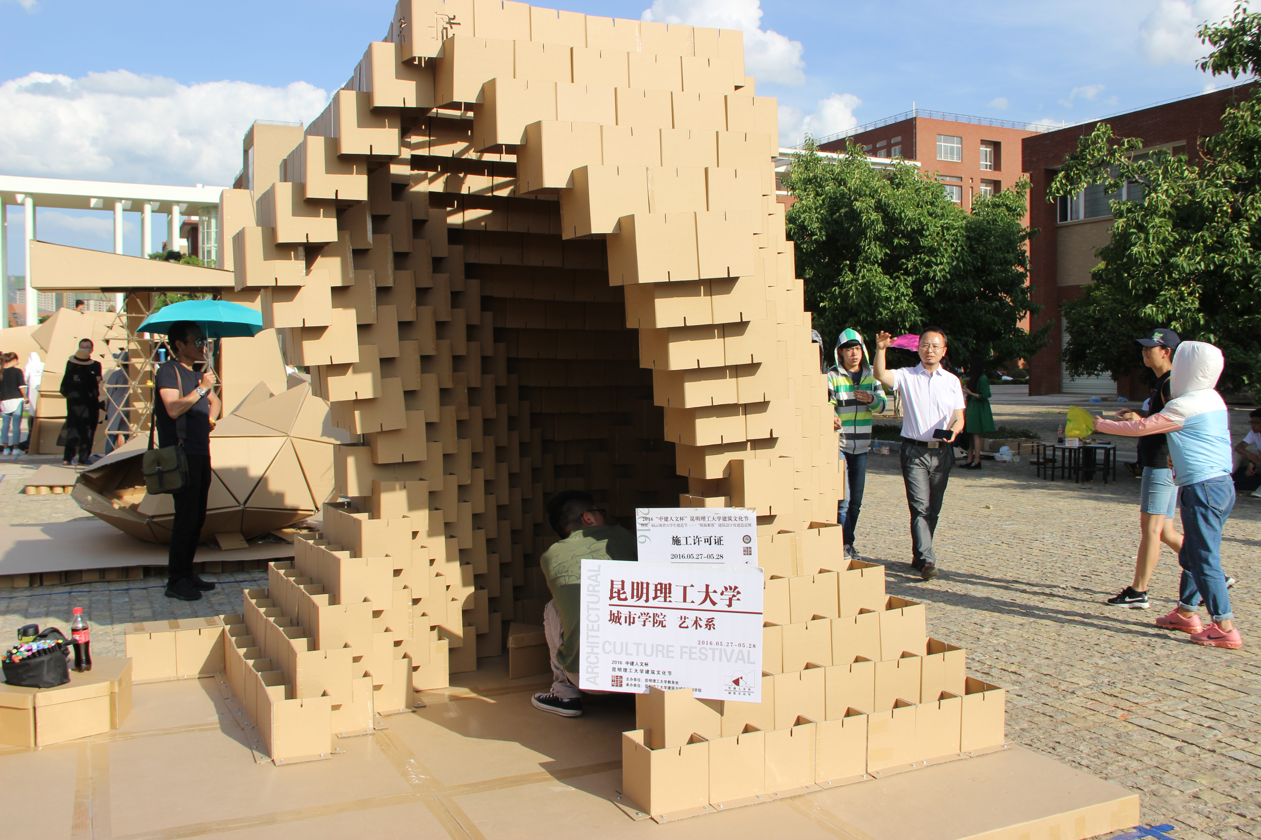建筑文化节暨第一届云南省大学生建造节——“纸板聚落”建筑设计与建造竞赛于 5 月 27 日至28 日在呈贡校区建筑楼前广场举行。