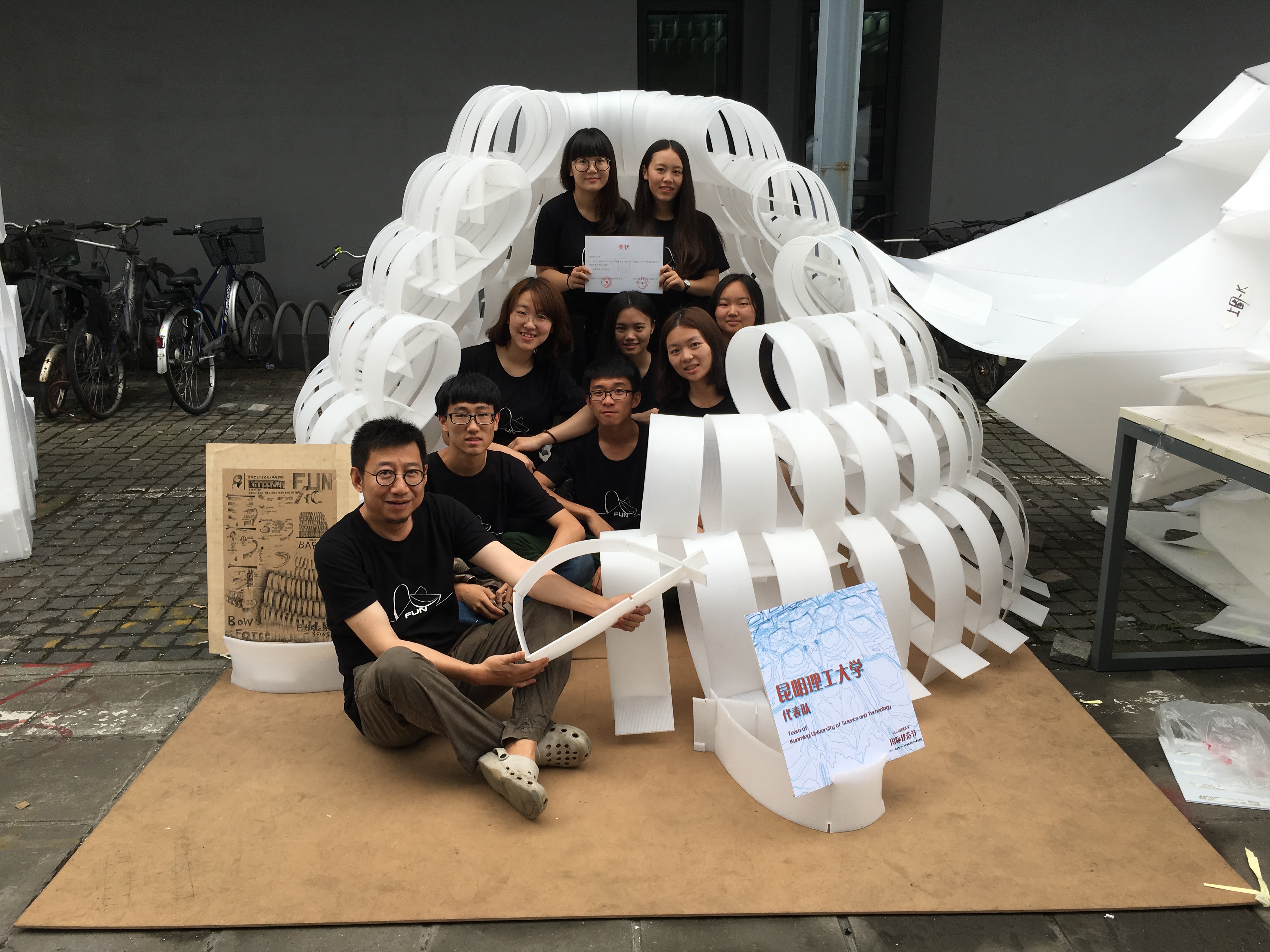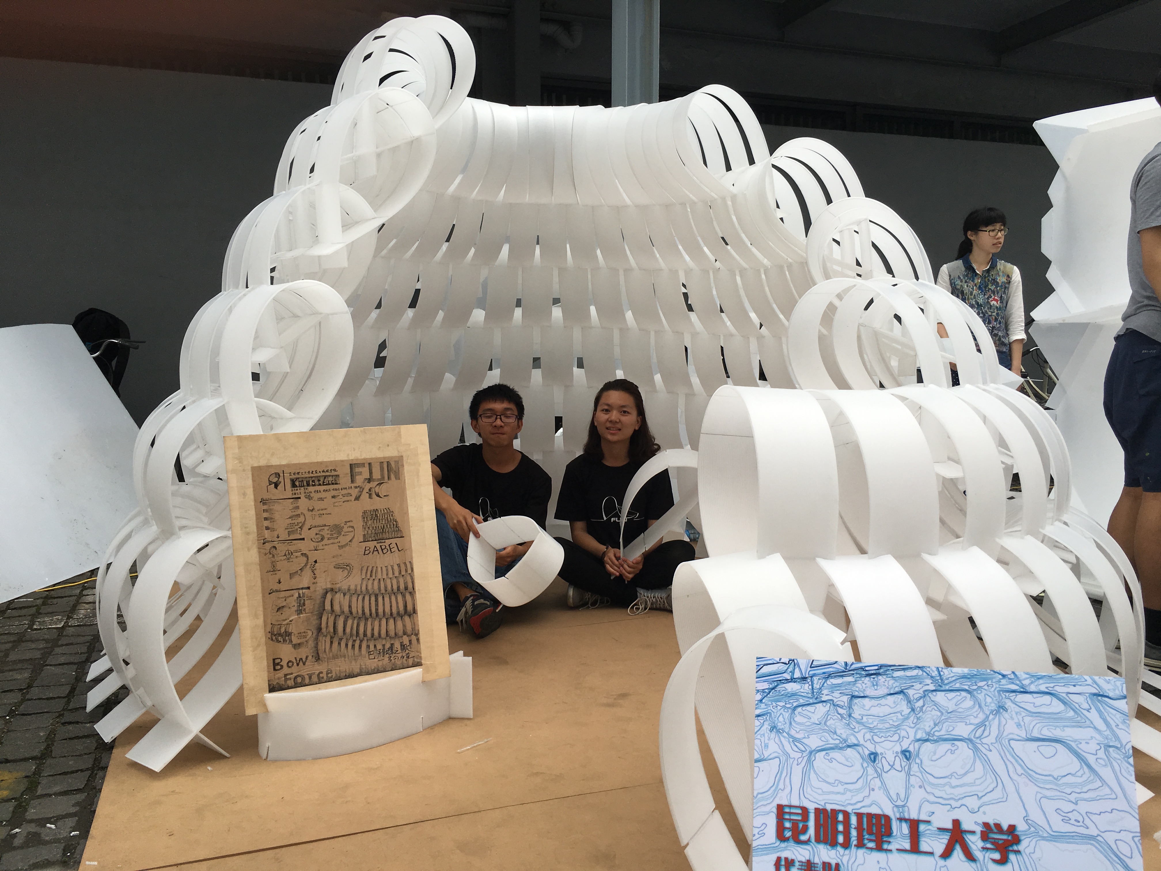 的作品不用螺丝,完全采用中空板的自身特性,通过单元体的咬合形成空间;西班牙加泰罗尼亚理工大学的作品把文远楼前的大树利用了起来,将自然界与建造节合二为一;每个参赛高校都展现了不同的创意和设计理念。
