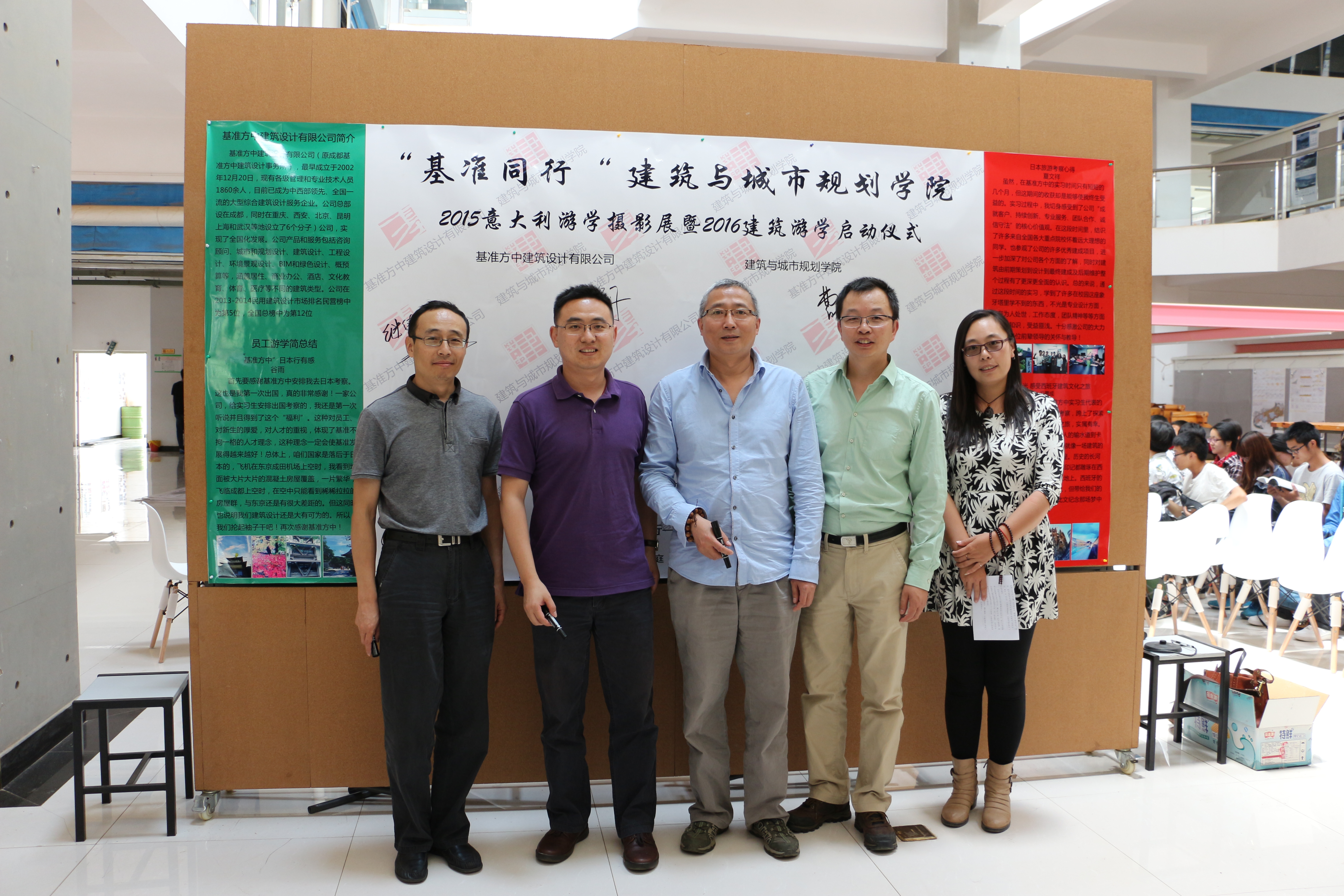 本次活动由学院李佐卫书记主持,基准方中建筑设计有限公司昆明公司副总经理邓丹、总建筑师曹小军,建筑学院党政领导、获得游学计划资助的同学和低年级学生代表共计50余人参加了启动仪式系列活动。启动仪式结束,2016基准方中游学计划获得资助的1名带队教师、5名本科生和3名研究生与基准方中及学院领导合影留念。