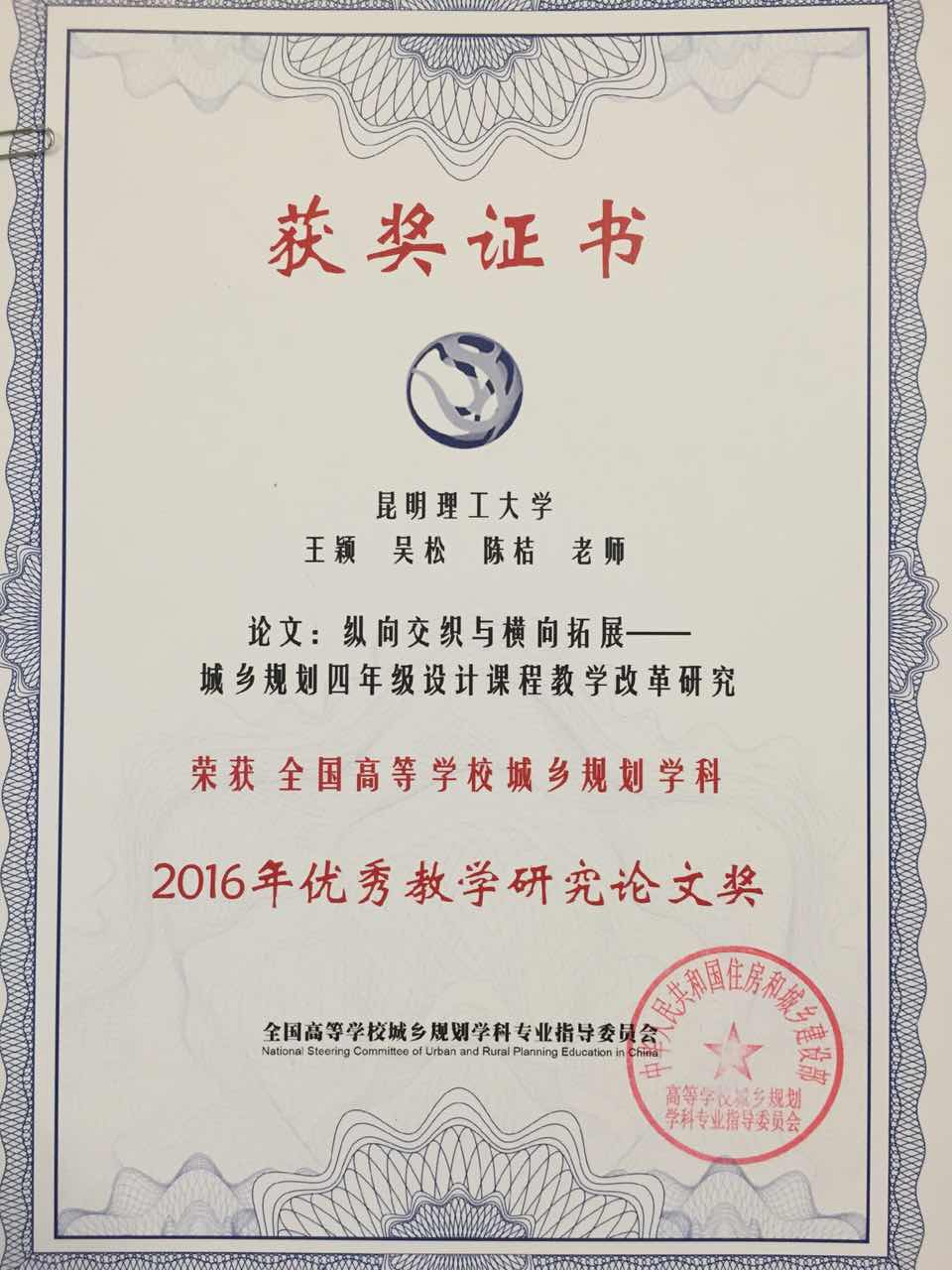 学院在本次年会相关竞赛中分别获得了全国高等学校城乡规划学科“2016年城市设计课程作业评优” 三等奖一项、“2016年优秀教学创新实验奖” 佳作奖一项、“2016年优秀教学论文奖”一项并参加了分论坛报告会交流发言。