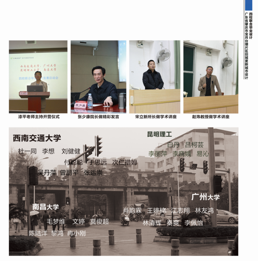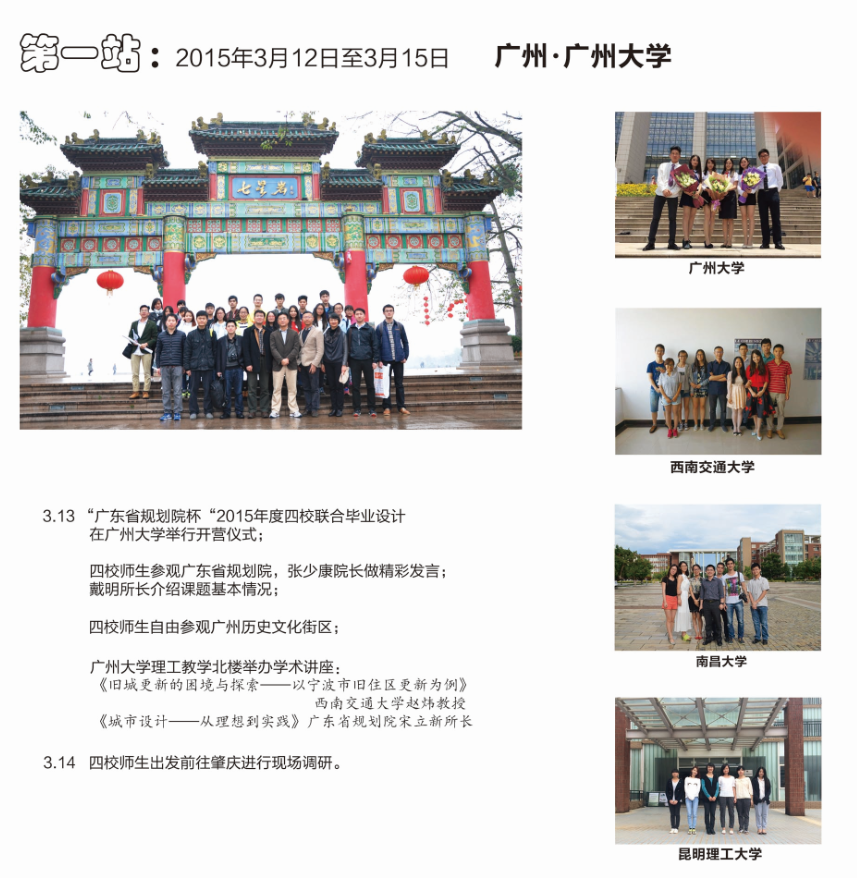,设计题目为“广东省连州市中山南历史文化街区城市设计”。四所高校都有自身的办学特色、地域文化和办学氛围,本次联合毕业设计四校师生之间不仅是教与学的交流,也是思想与观念的碰撞,收获良多。广东省规划院的蘑菇视频给人印象深刻,他们的参与使4+1的设计更具有实践性和可持续性,感谢他们对教育的支持与奉献!这次教学活动圆满完成,2014年的作品集已经出版发行。