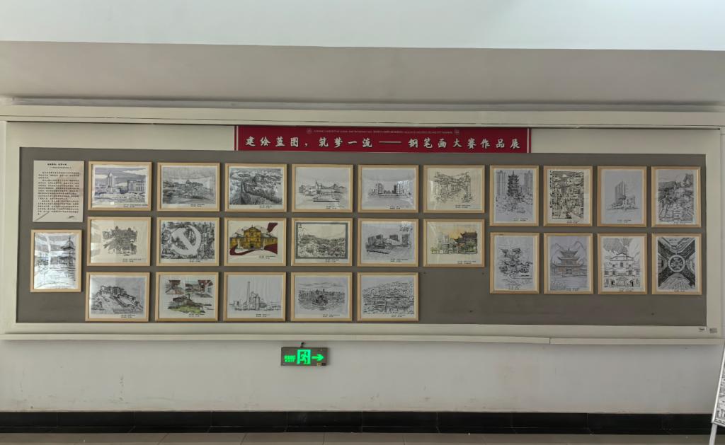 无人机摄影大赛共收到97幅高质量航拍作品,学子们操作无人机翱翔天际,以独特的“云端视角”聚焦革命纪念场所、历史街区、工业遗产及传统村落,用镜头语言探寻历史脉络,记录新时代标志性建筑的宏伟气象。同期举办的钢笔画大赛共收到46幅作品,学子们回归手绘初心,以钢笔的细腻线条深度刻画红色建筑、历史景观与校园风貌。参赛者通过写实、写意等手法,生动诠释了建筑的空间之韵与精神内核。两项比赛的作品在学院二楼大厅进行展览,呈现了一场精彩的视觉盛宴,让观众在方寸之间感受历史与当下的对话。