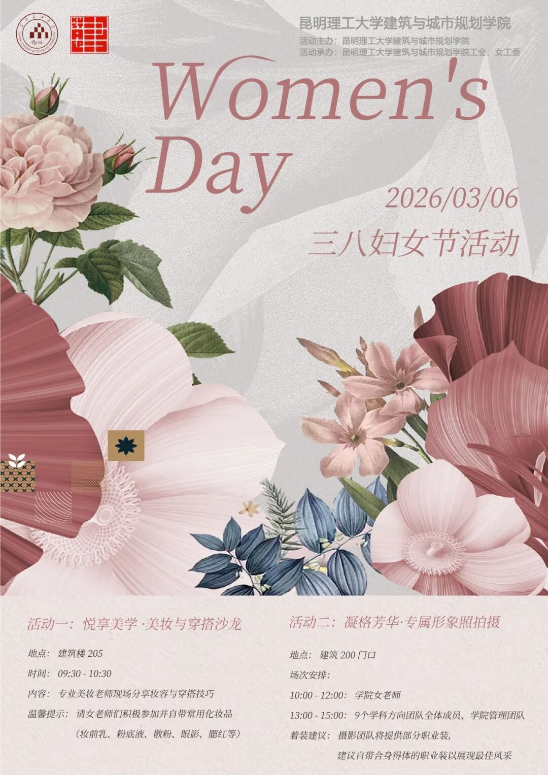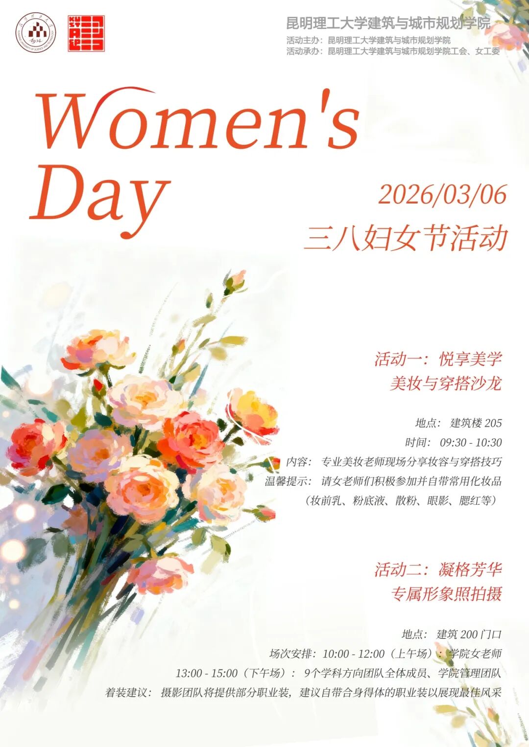 本次活动解锁全新美学体验,首场“悦享美学・美妆与穿搭沙龙”于上午9:30在建筑楼 205 温馨开启~