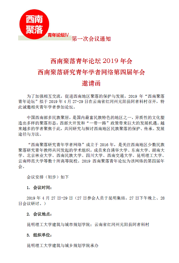 西南聚落研究青年学者网络第四届年会邀请函190329gai