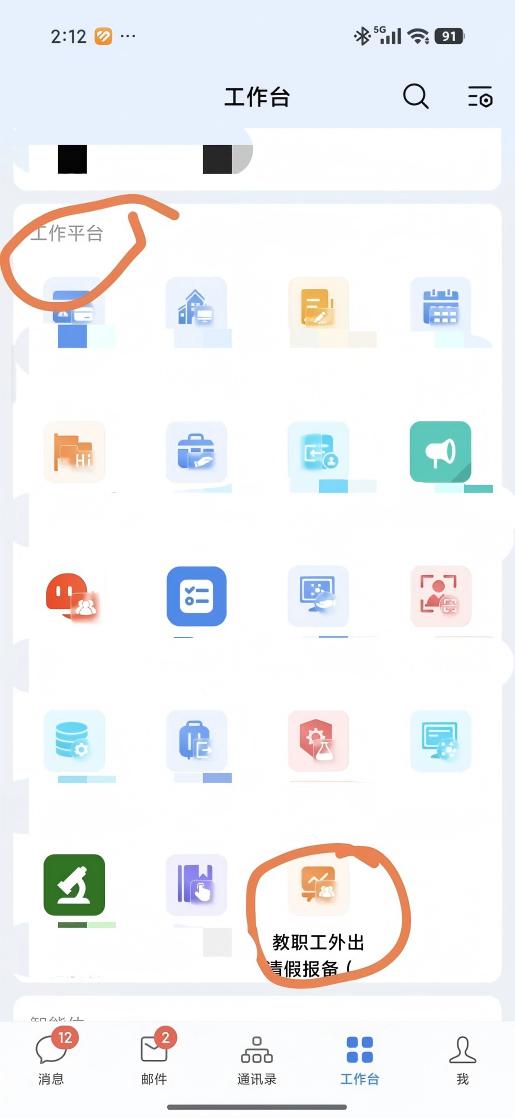 手机端具体操作步骤如下:登录企业微信工作台,找到“工作平台”,选择“教职工外出报备(两级审批)”事项即可办理。后续操作演示以 PC 端为例,手机端操作流程与之一致。