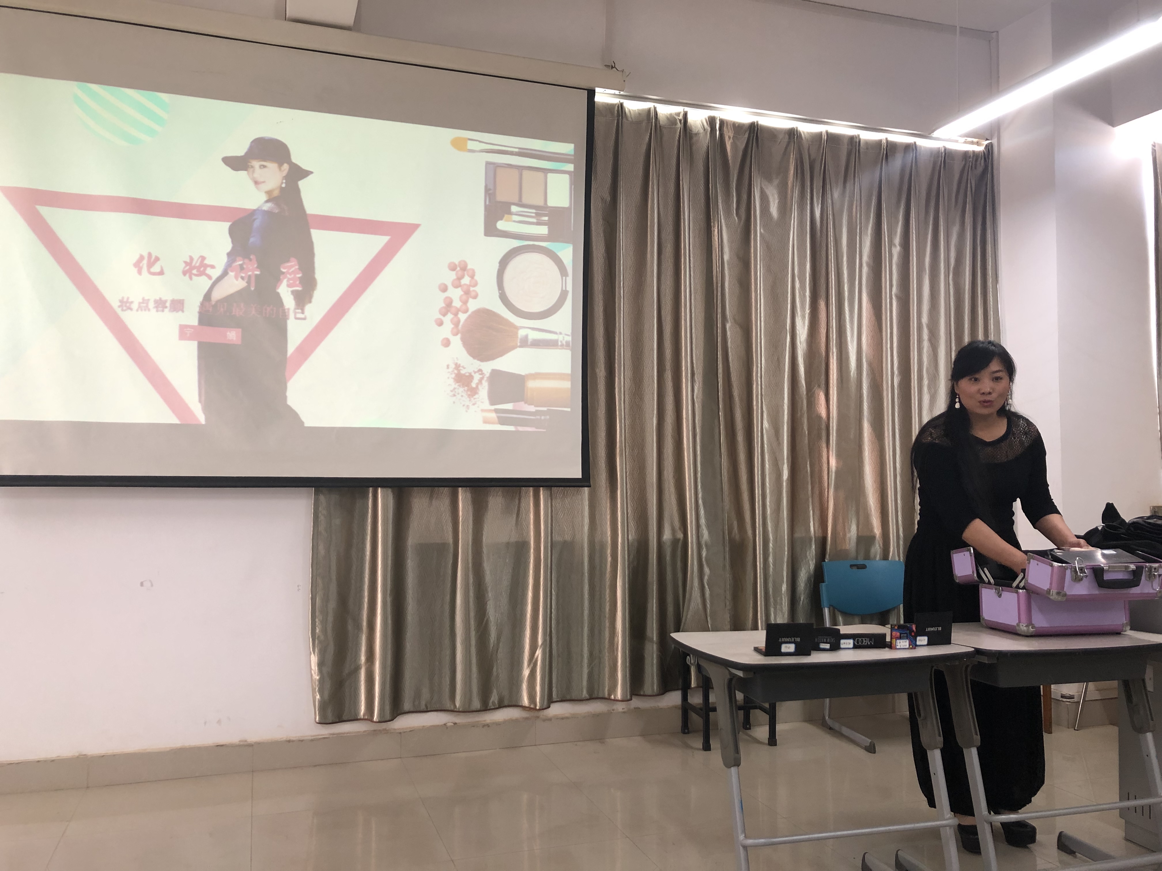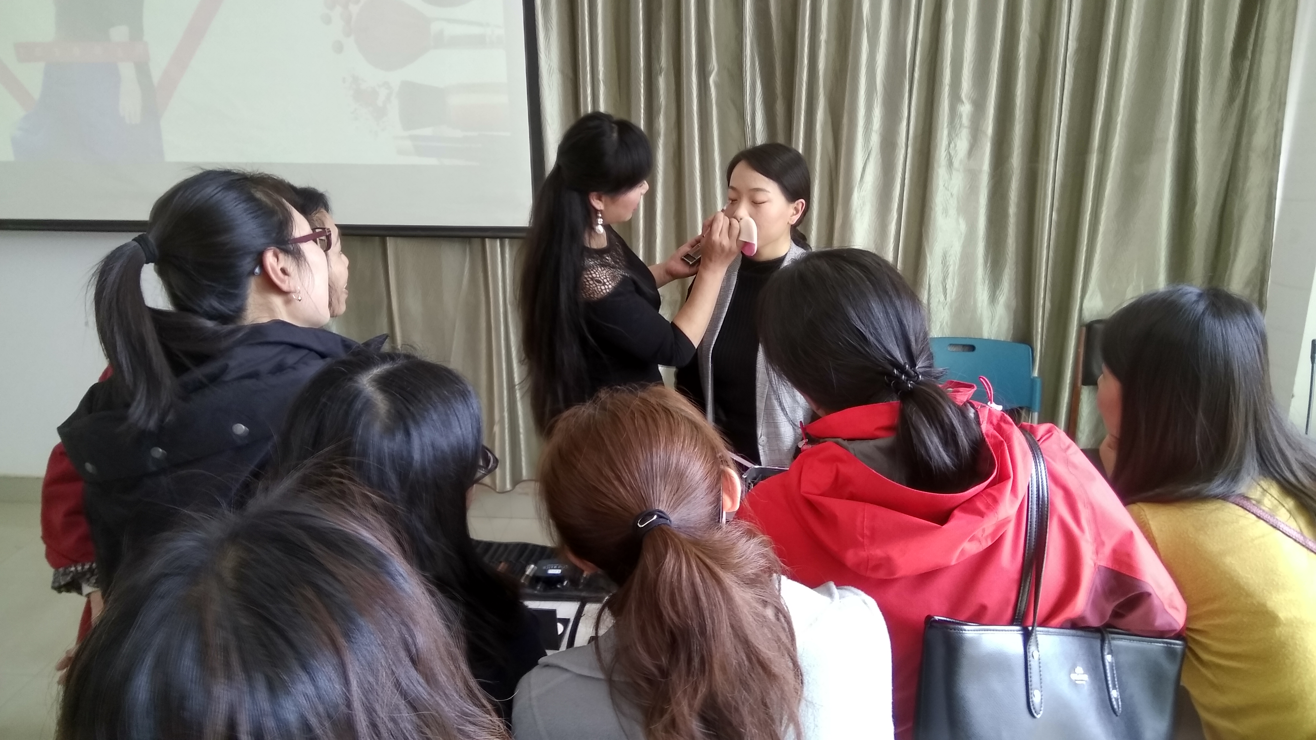 3月7日下午,学院工会邀请国家高级化妆造型师宁娟老师,在建筑楼305为学院女教师开展“妆点容颜,遇见最美的自己”妆容培训活动。宁娟老师通过追溯化妆历史、分析妆容类型、展示不同妆容效果,向女教师生动阐释了妆容的重要性;之后就职业妆容的化妆步骤和要点进行了讲解;最后进行现场演示。